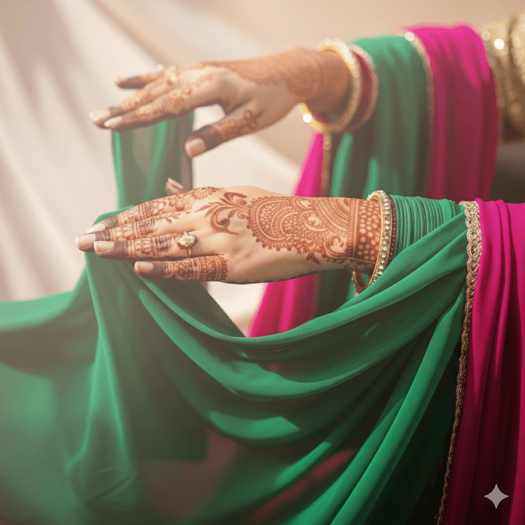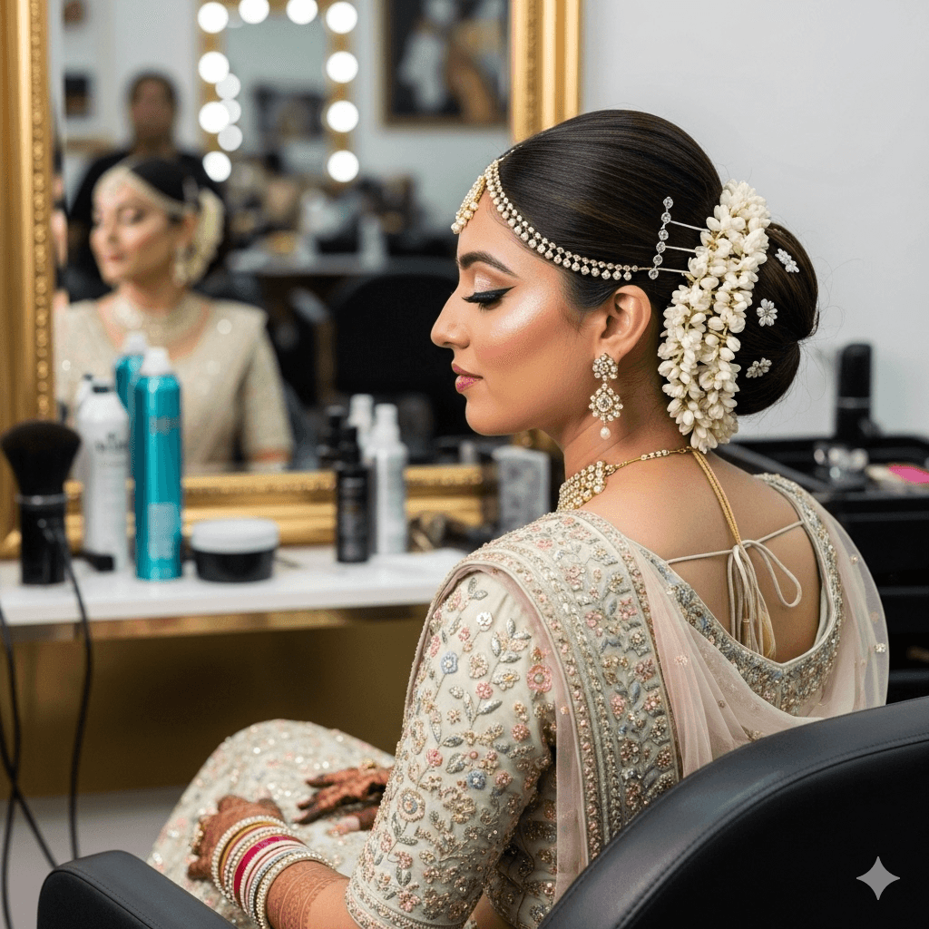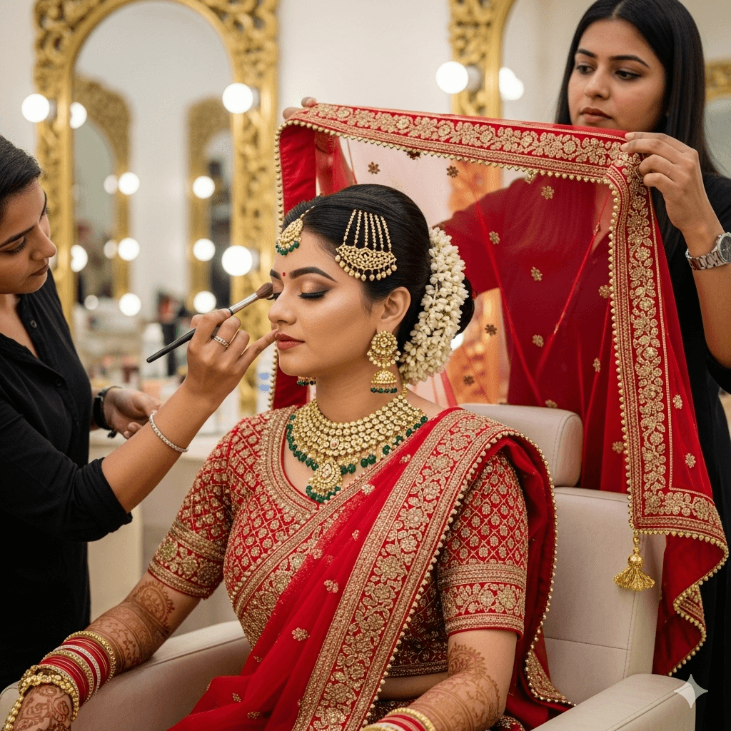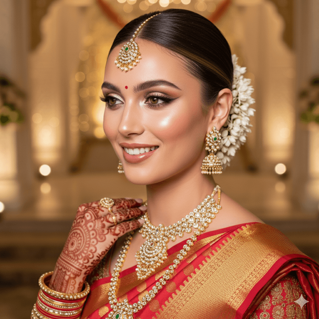 Bridging timeless Indian bridal traditions with contemporary luxury. Bridal makeup, hair styling, intricate mehendi, and elegant saree draping—crafted with premium products and impeccable artistry.